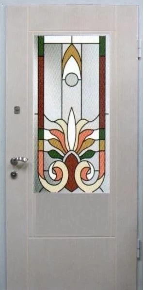 Входные двери в Гусеве с применением декора витражом изготавливаются из стального профиля, придающего прочность конструкции, а сама витражная вставка обладает высокой взломостойкостью, поскольку для витражных композиций используется специальное стекло, обработанное особым образом. Усилить надежность витражного элемента можно с помощью использования декоративных кованных решеток.